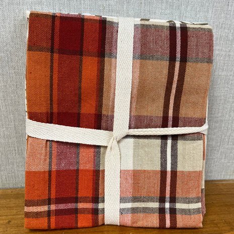 This fall dish towel set features one towel proclaiming "eat, drink, and be thankful" with a coordinating plaid towel in your favorite fall hues!