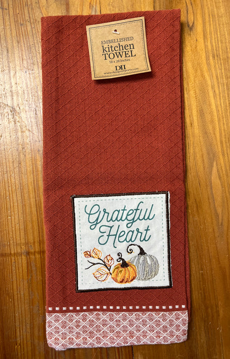 "Grateful Heart" Embellished Dishtowel